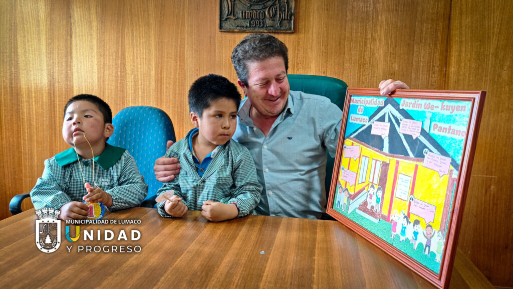 Tras finalizar las actividades en el gimnasio, los niños y niñas del Jardín Infantil We-Kuyen, del sector El Pantano, se trasladaron hacia el edificio de la Ilustre Municipalidad de Lumaco. Allí fueron recibidos nuevamente por el alcalde Richard Leonelli Contreras, quien sostuvo una grata reunión con ellos, con las educadoras de párvulo y los apoderados presentes.